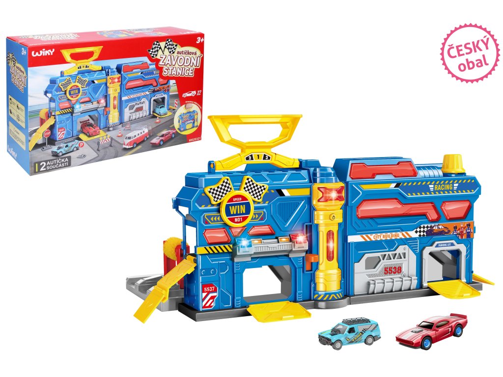 Pretekárska stanica prenosná. Rozmery 55x20x25 cm. Svetelné a zvukové efekty. 3xAG13 batérie súčasťou. Súčasťou 2 autá s voľnými kolesami, značky, nálepky. Obrázkový návod na zostavenie súčastí. Nálepky nalepte podľa obrázkov na obale.Dodatočné parametre