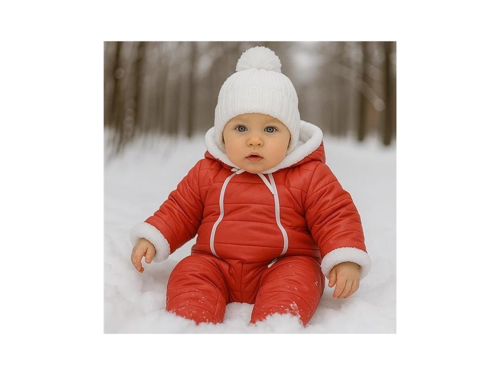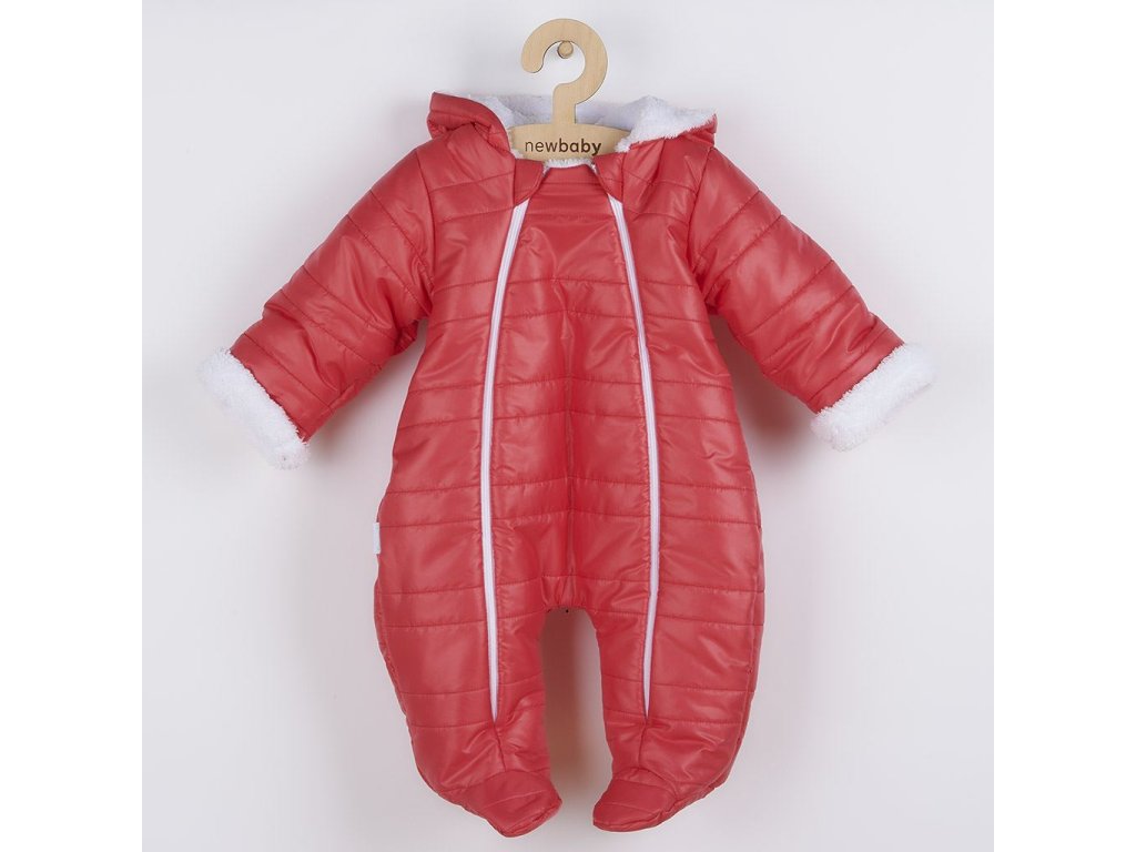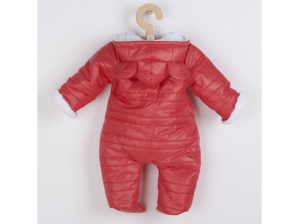 Zimná dojčenská kombinéza s kapucňou a uškami New Baby Pumi red raspberry