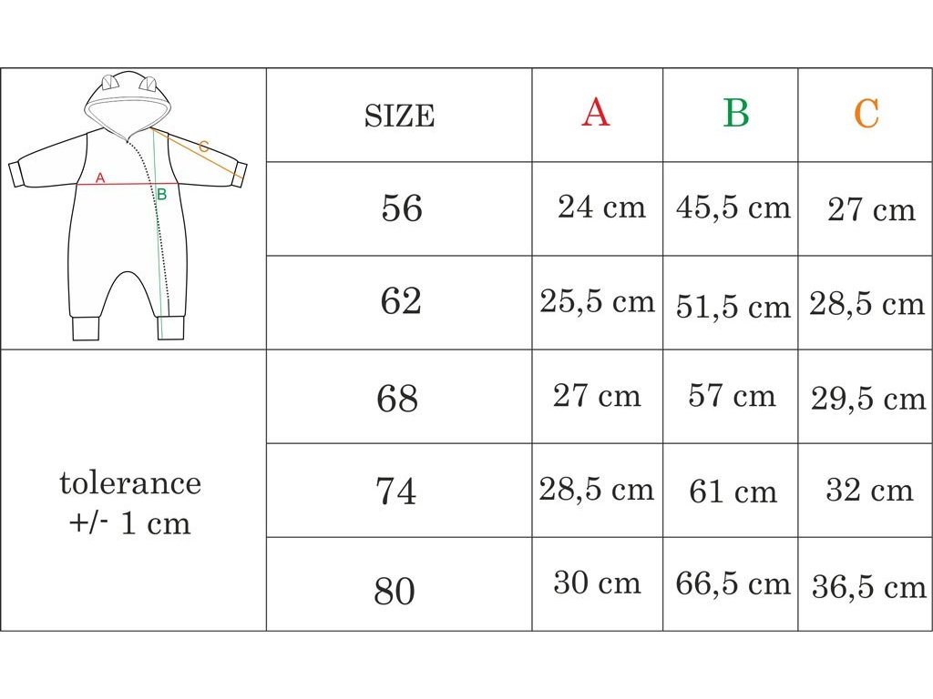Roztomilý štýlový a praktický zimný overálek s kapucňou a uškami Nicol Emily pre bábätká. Každé bábätko v ňom bude úplne úchvatné av pohodlí teplúčka. Je vyrobený z kvalitnej látky, ktorá je veľmi príjemná na dotyk. Materiál si po dlhú dobu zachováva svoj pôvodný tvar. Overal je podšitý z hrejivého materiálu tzv. Wellsoftu. Rukávky je možné vyhrnúť a tým vynikne hrejivá podšívka. Bočné zapínanie po celej dĺžke na zips uľahčí obliekanie. Zloženie: semiš-vrchný materiál: 77% bavlna, 23% polyester, podšívka 90% polyester, 10% bavlna-typ welsoft. Ideálne pre bábätká na zimu a jeseň. OEKO TEX-ŠTANDARD 100.Dodatočné parametre