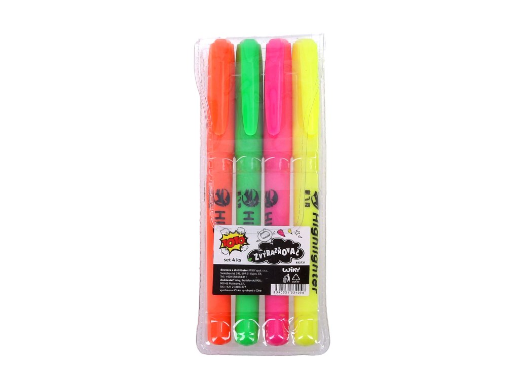 Zvýrazňovače sú praktickou pomôckou ako do kancelárie, tak aj do školy. určené na zvýrazňovanie textov na všetkých druhoch papiera zatvárací vršok klinový hrot Balenie obsahuje 4 základné farby: oranžová zelená ružová žltáDodatočné parametre